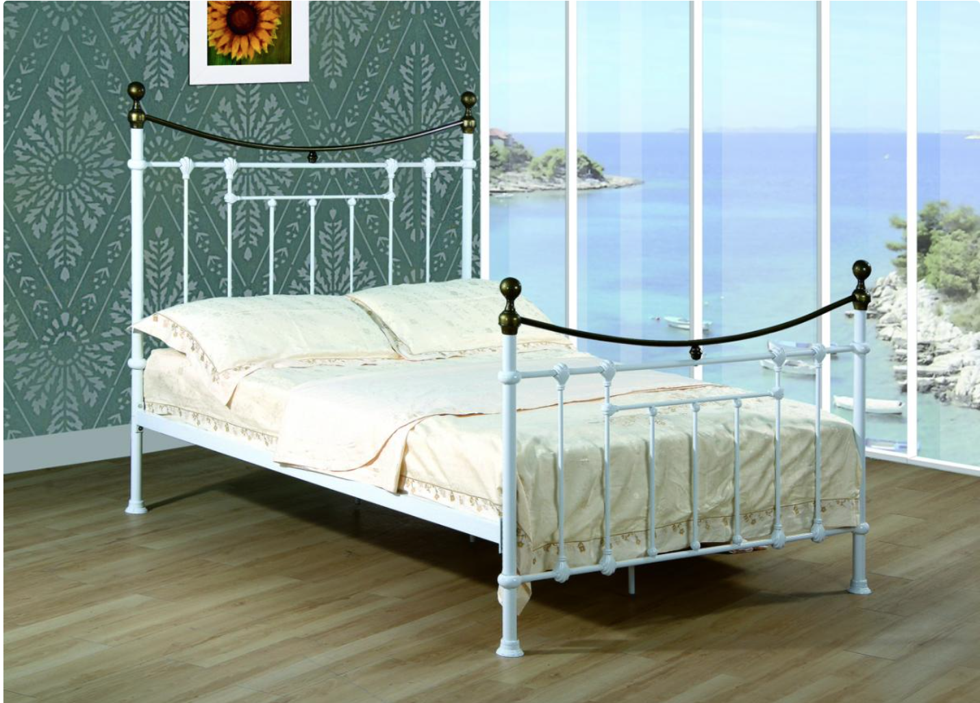 White with Antique Brass finish, Available in Double- £185.