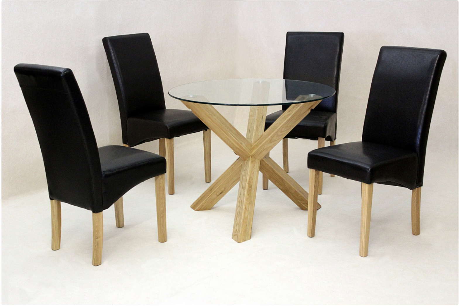 Saturn Small Table 950W Round, 75 x 75mm Solid Oak Leg, 10mm Glass Top
