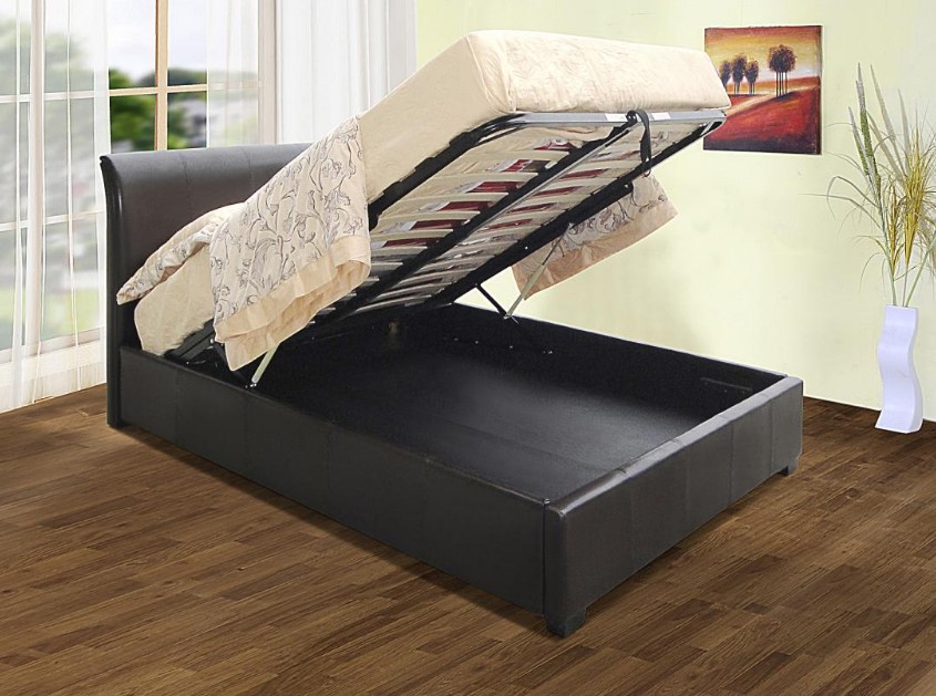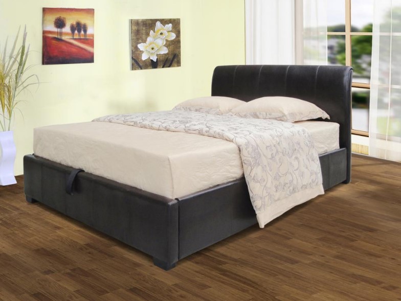 Savona Storage PU Double Bed Black, Brown . With Board Base, Available in Single, Double, King size.