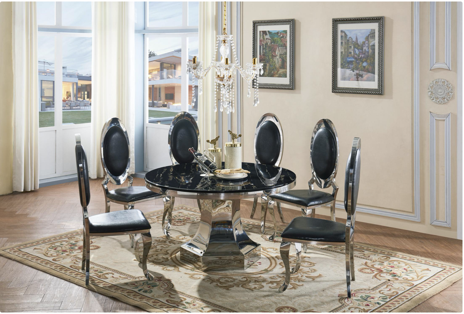 Natural Stone with Marble Effect and Lacquer Finish, Black and Stainless Steel, 1300W Round x 750H,