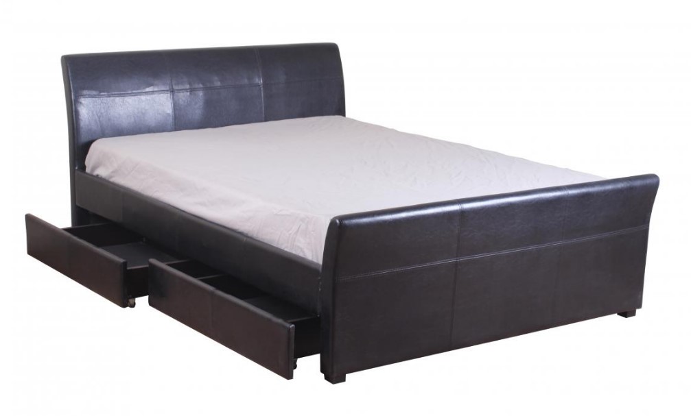 Viva Faux Leather 4 Drawer Bed.Double, Kingsize.Black, Brown