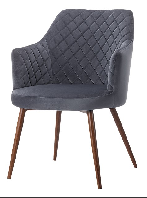 Ackleton Dining Chair, 590W x 700D x 830H, Grey Velvet with Walnut Colour Legs