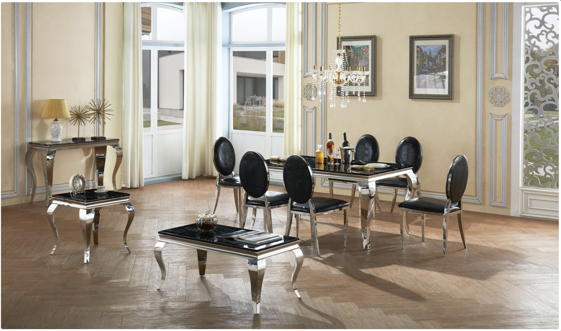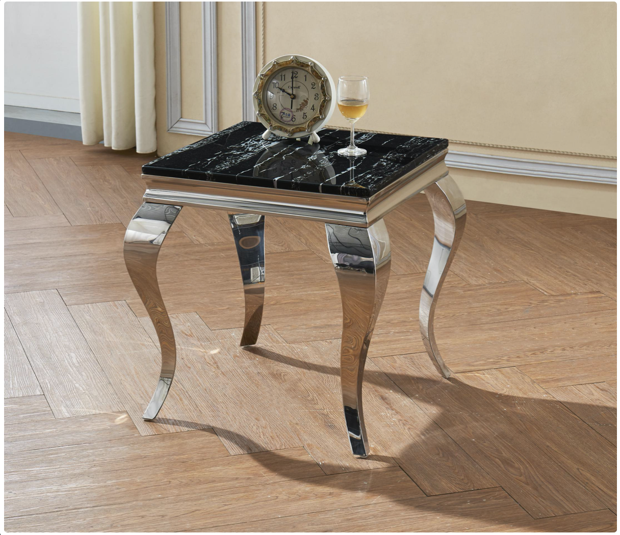 Natural Stone with Marble Effect and Lacquer Finish.Black and Stainless Steel, Lamp Table 500W x 500D x 550H