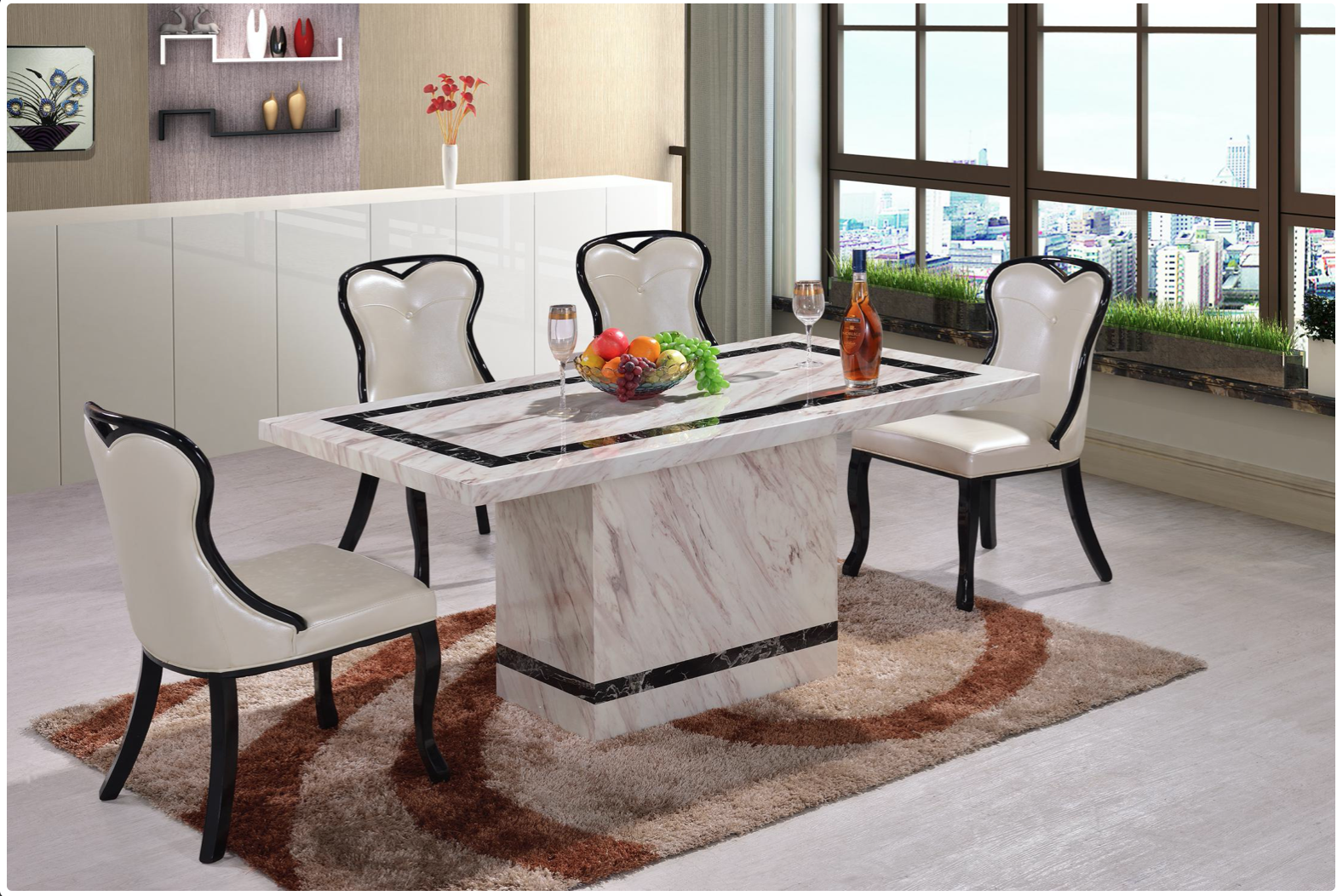 Marble top with Marble base Table, 1600W x 900D x 750H, Calgary chair -£216.