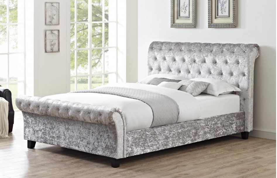 High Foot End, Crushed Velvet, Double, Grey