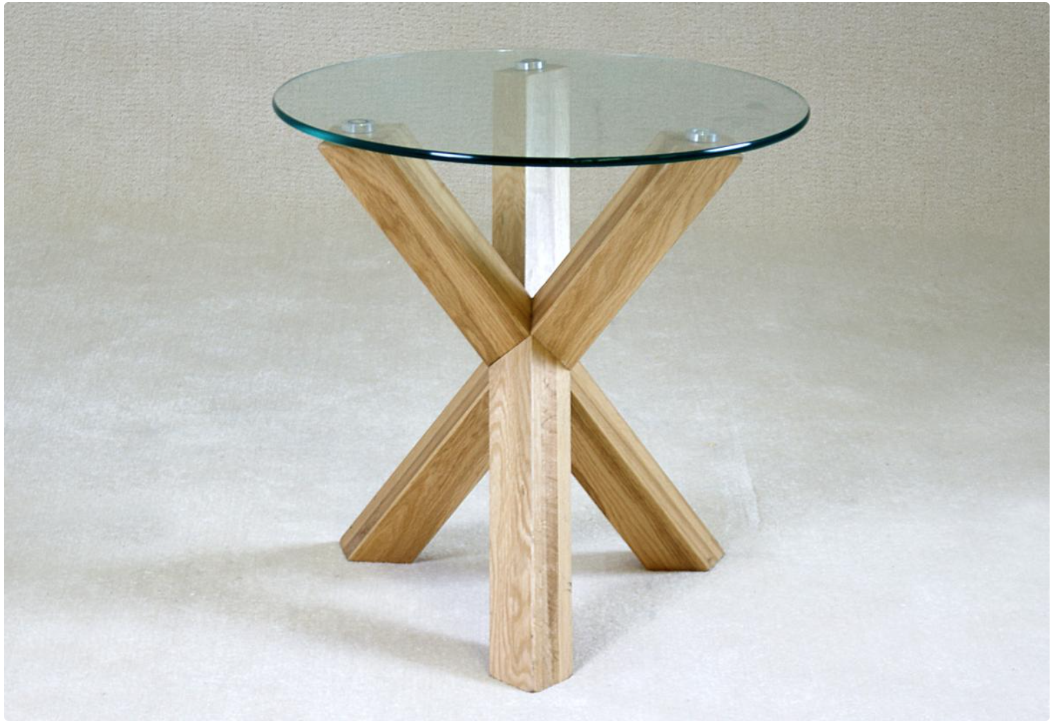Lamp Table 550W Round x 550H 60 x 60mm Solid Oak Leg & 10mm Glass Top . Solid Oak . Natural Oak
